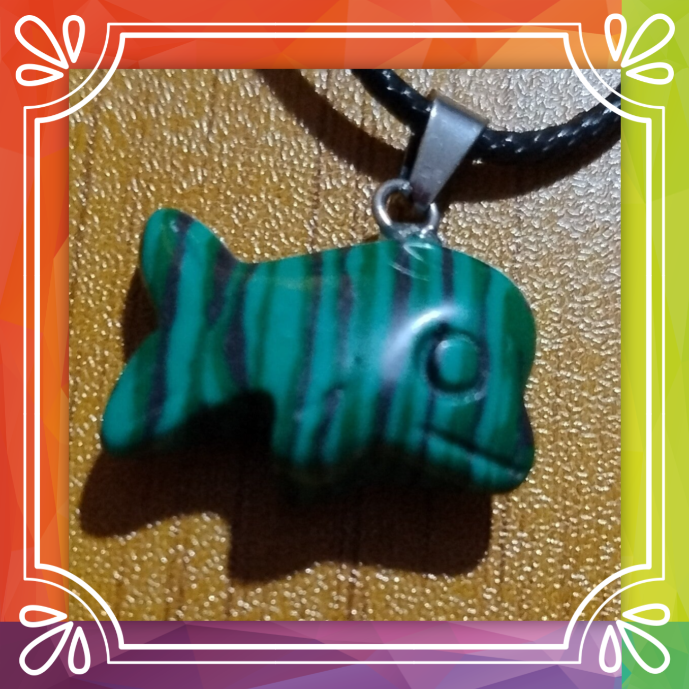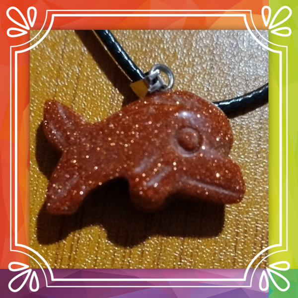 A real healing crystal, cut, shaped and polished into a dolphin shape, on a lace style necklace.