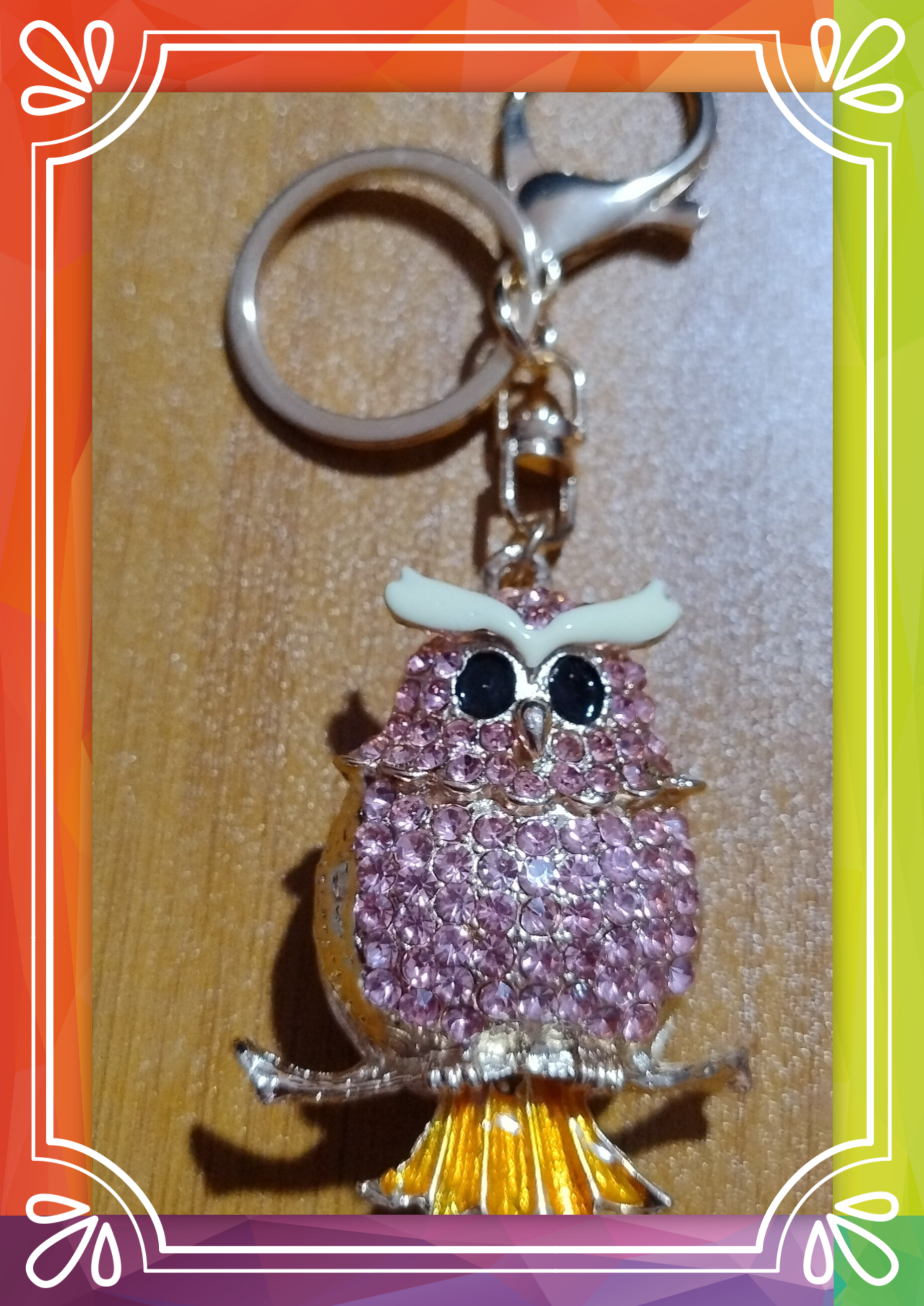 Real Austrian crystals set into gold tone stainless steel in various shapes, attached to a keyring and large lobster clasp.