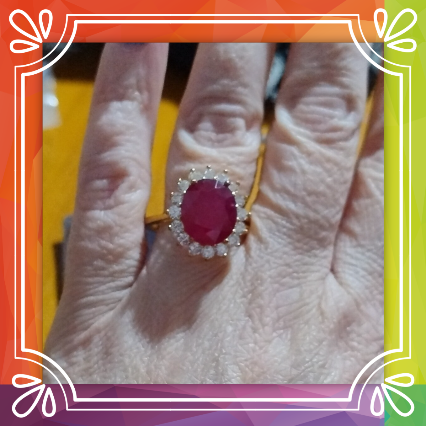 A real African ruby and zircon stones used as a border, set into gold plated, 925 sterling silver.