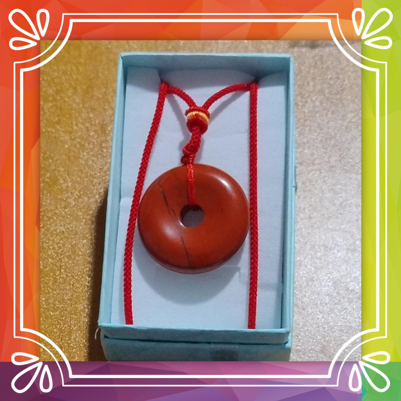 A real healing crystal, cut, shaped and polished into a donut design on a colour matching thong.