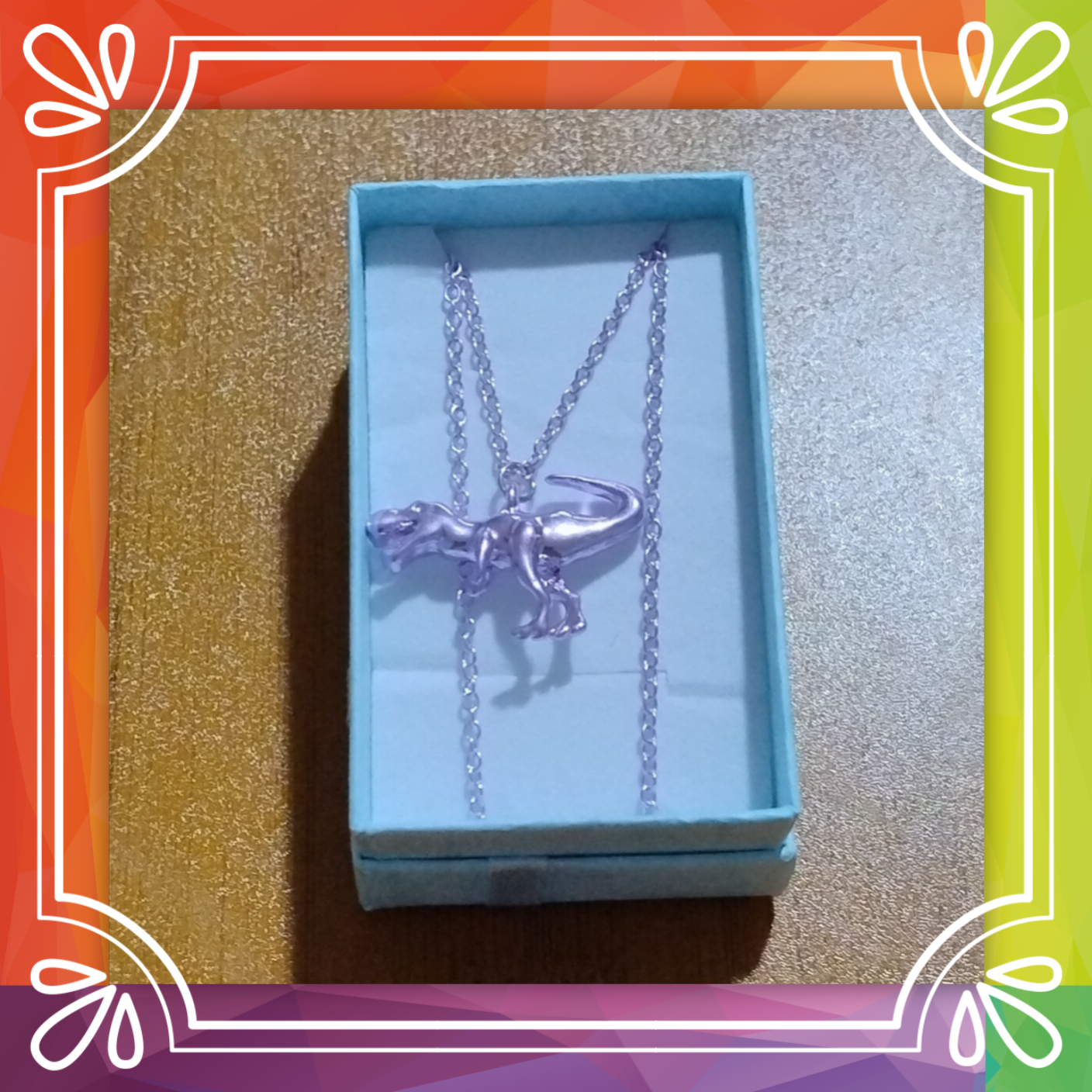 A cute little dinosaur shaped pendant on a 16 inch, colour matching chain.